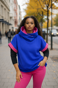 BLUZA BEZ RĘKAWÓW OVERSIZE KAMIZELKA- CHABER Z FUKSJĄ