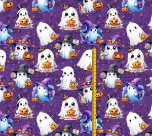 Dzianina PEACH SKIN, DUSZKI FIOLET HALLOWEEN