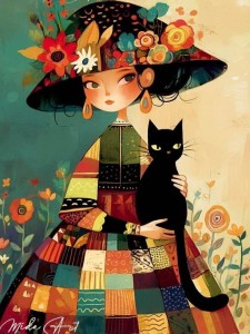 Panel, welur tapicerski, 45 cm/ 45 cm- DZIEWCZYNA W SUKIENCE PATCHWORK