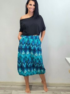 Spódnica w literę A. Wykończona gumą na dole. GEOMETRIA TURKUS